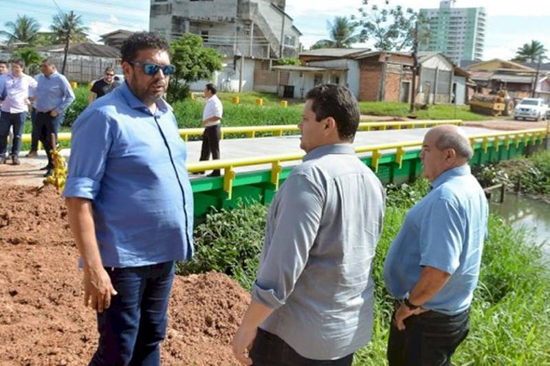 O senador Davi Alcolumbre (UNIÃO) visitou na última terça-feira (7), a obra da ponte da Av. Anhanguera, que liga o bairro Buritizal ao Canal Beirol, zona sul de Macapá. Na ocasião, o parlamentar revelou que cerca de 30 pontes de madeira espalhadas pelo estado do Amapá serão substituídas por de concreto e aço até o final do ano.